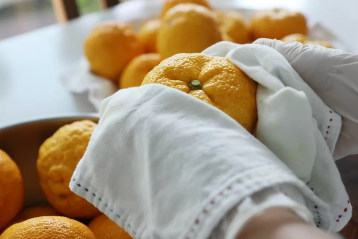깨끗하게 씻은 유자는 물기를 완전히 닦아주세요.