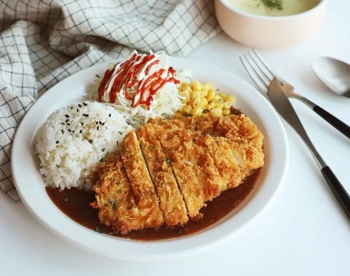 바삭바삭하게 갓 튀겨진 돈가스를