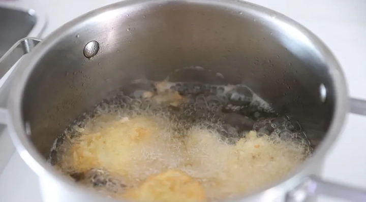 앞뒤로 노릇노릇하게 골고루 튀겨주세요.