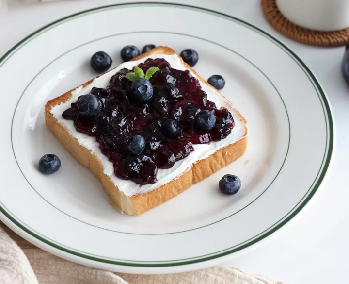 [재료]: 식빵, 크림치즈, 블루베리잼