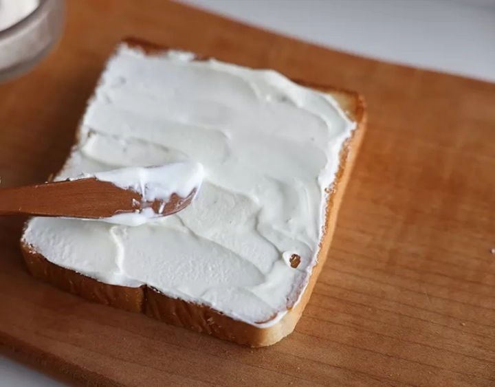 구운 빵은 한 김 식혀준 뒤 크림치즈를 아주 듬뿍 많이 발라주세요.