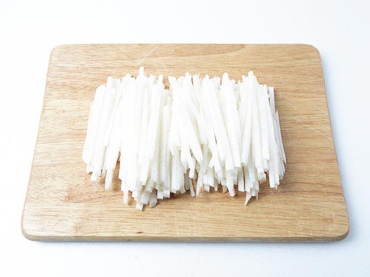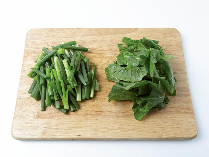 쪽파와 갓은 비슷한 길이로 썰어주세요.