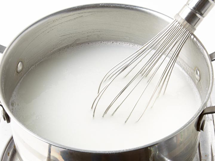 중간불에서 거품기로 저어가며 끓여 찹쌀풀을 만들어주세요.