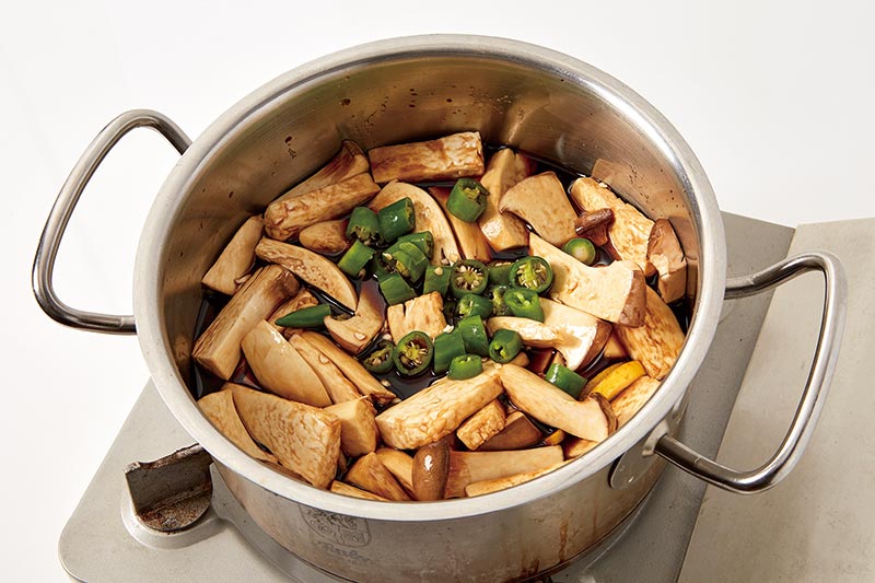 [재료]: 새송이버섯 3개, 청양고추 3개