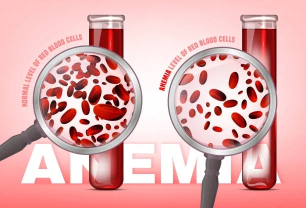 빈혈이란 말초 혈액 내에 존재하는 적혈구의 수치가 감소하고 혈색소인 헤모글로빈의 농도가 정상 수치 이하로 감소되어 인체조직 대사에 필요한 산소를 충분하게 공급하지 못해 조직의 저산소증을 초래하는 경우를 말한다고 합니다.