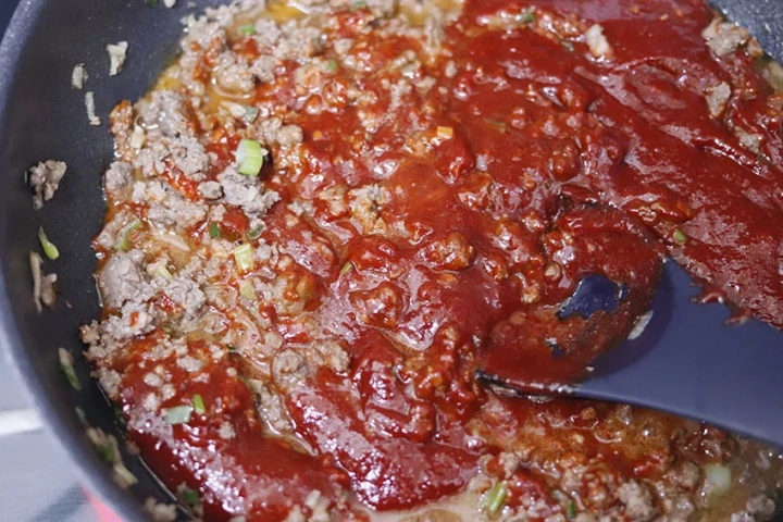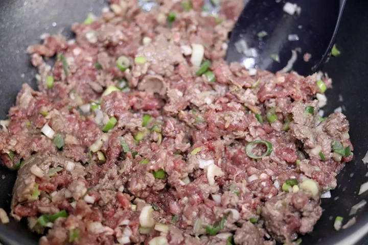 뭉쳐진 고기는 풀어주면서 촉촉하게 완전히 익게 볶아주세요.