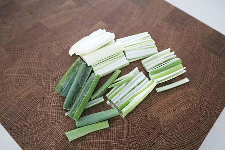 [재료]: 통조림햄 200g, 대파 2대, 소시지 2개,