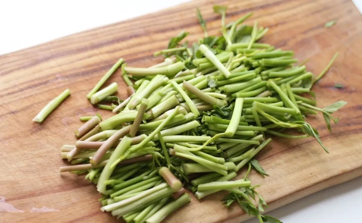 손질한 미나리는 적당한 길이로 먹기 좋게 썰어주세요.