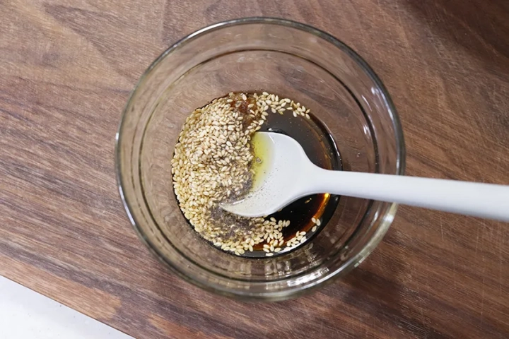 [드레싱재료]: 진간장 3큰술, 올리브오일 3큰술,
