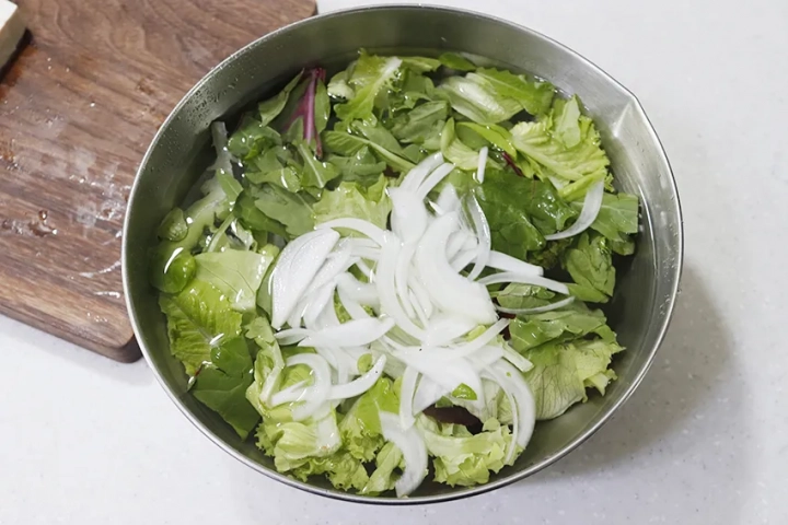채소는 더욱 싱싱하게 되고 양파는 매운맛을 중화시켜줘요.