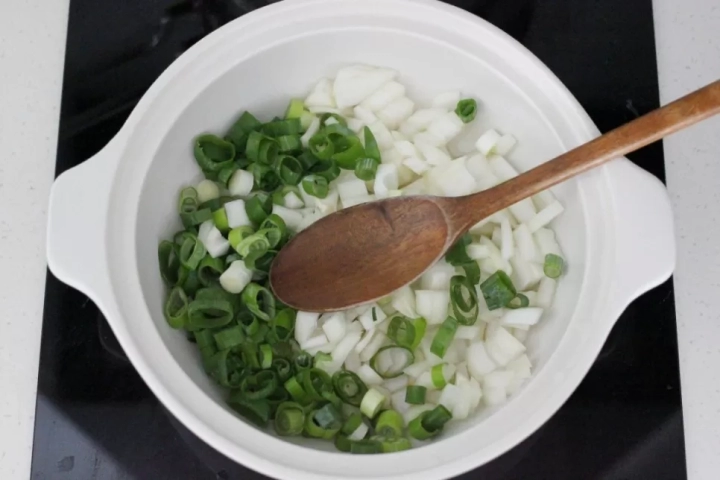 냄비에 참기름 1큰술, 식용유 1큰술 섞어 둘러주고