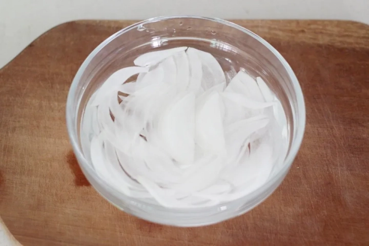 양파는 채를 썰어 찬물에 10분 정도 담가 매운맛을 제거해재주세요.
