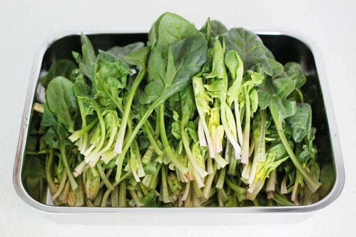 시금치는 깨끗하게 씻어 밑동을 제거하고 잎을 하나씩 떼어주세요.