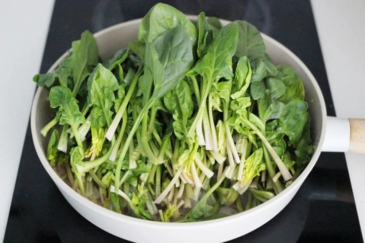 시금치가 숨이 죽으면 소금으로 간을 하고
