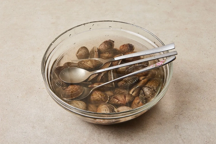 스테인리스 숟가락 하나만으로도 해감이 된다는 사실 아셨나요? 스테인리스의 철 성분이 소금물과 만나 산화 반응을 일으켜 바지락 해감이 더 쉬워진다고 하는데요. 소금물에 숟가락을 담가 해감하면 효과는 2배라고 합니다.