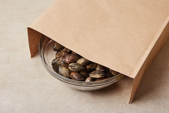 바지락이 호흡할 때 모래를 뱉어내는 생태 습관을 이용하여 빛이 통하지 않는 검은 비닐 백이나 두툼한 쇼핑백을 활용해 빛을 완벽하게 차단하면 훨씬 쉽게 이물질을 토해낸다고 합니다.
