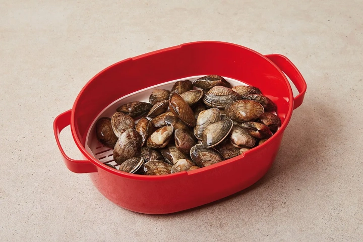 조개류를 해감할 땐 반드시 체가 필요하다고 하는데요. 해감이 끝난 바지락을 바로 건지면 뱉어낸 모래를 다시 먹을 수 있기에 바지락을 체에 밭쳐 바닥면에서 띄우면 모래만 아래로 가라앉으니 꼭 체에 받쳐주세요.