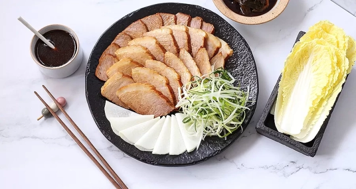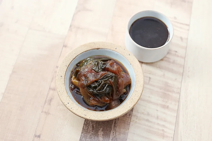 배추랑 쌈무에 올리고 졸인 대파 곁들이면