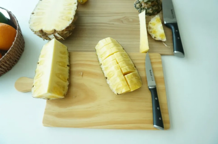 파인애플 윗단을 잘랐다면 1/2등분 해서 자르고