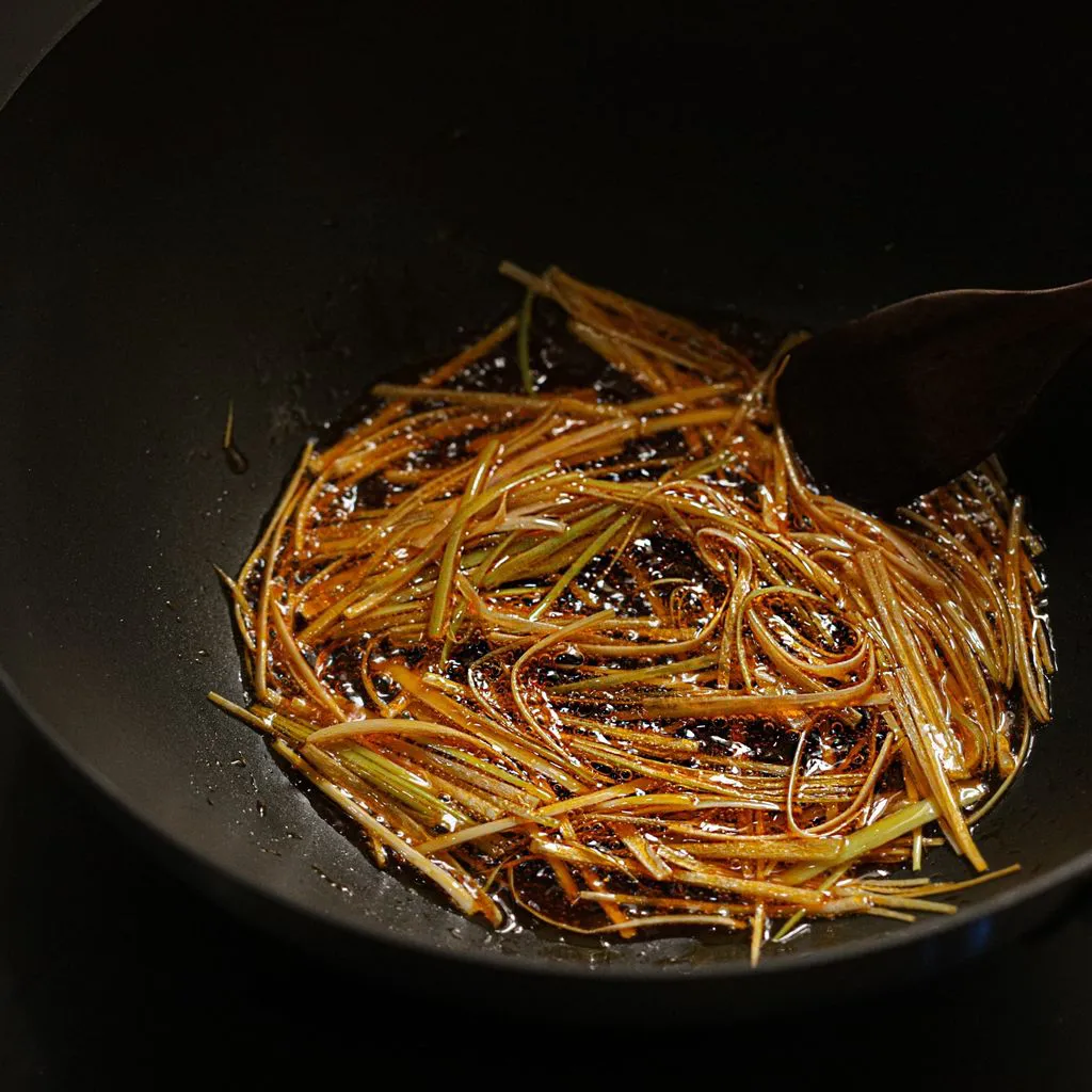 달군 팬에 식용유와 고추기름을 두르고 대파를 넣어 볶아주세요.