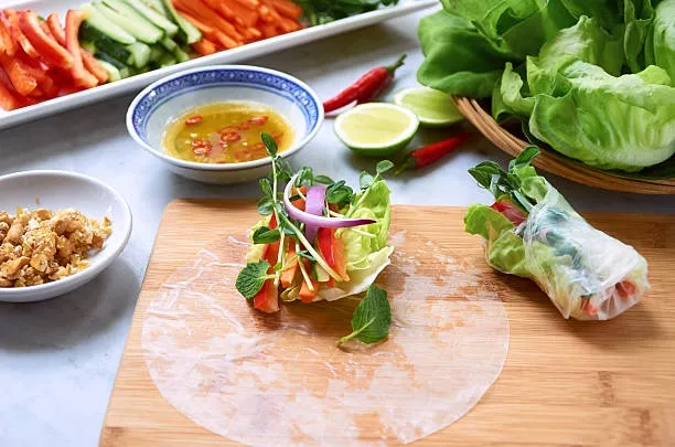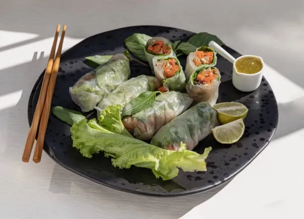 식재료를 다양한 요리로 먹는 것도 즐거운 다이어트 방법 중 하나라고 하는데요. 월남쌈이 이에 해당하는 요리 중 하나로 다양한 채소와 과일을 활용해 맛도 즐기면서 식단 조절도 할 수 있죠. 라이스페이퍼에 다양한 채소들을 한가득 넣어 먹으면 몇개만 먹어도 포만감이 크고 채소만으로 질린다면 방울토마토, 칵테일 새우, 슬라이스한 소고기 등을 넣어 색다르게 먹어도 좋다고 합니다. 또한 월남쌈을 먹게 되면 쌈을 싸는 속도와 먹는 속도가 느리기 때문에 과식을 피할 수 있다고 합니다. 단, 가급적이면 소스는 찍어 먹지 않는 것이 좋으며 라이스페이퍼 한 장에 17kcal로 많이 먹으면 칼로리가 높아지니 너무 많이 먹는 것은 좋지 않으며 한번에 라이스페이퍼 1/2장을 사용하는것도 좋은 방법이라고 합니다.