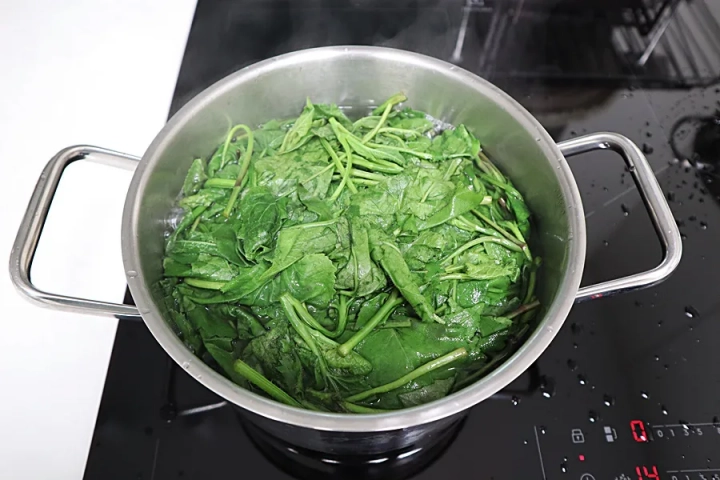 취나물을 넣고 뒤집어가며 1분 30초 정도 데쳐주세요.