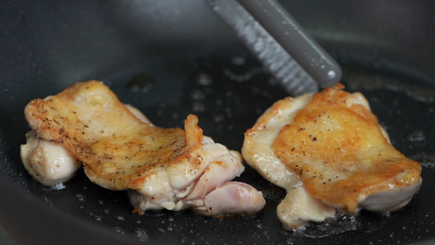 밑간한 닭고기를 앞뒤로 노릇노릇 구워주세요.