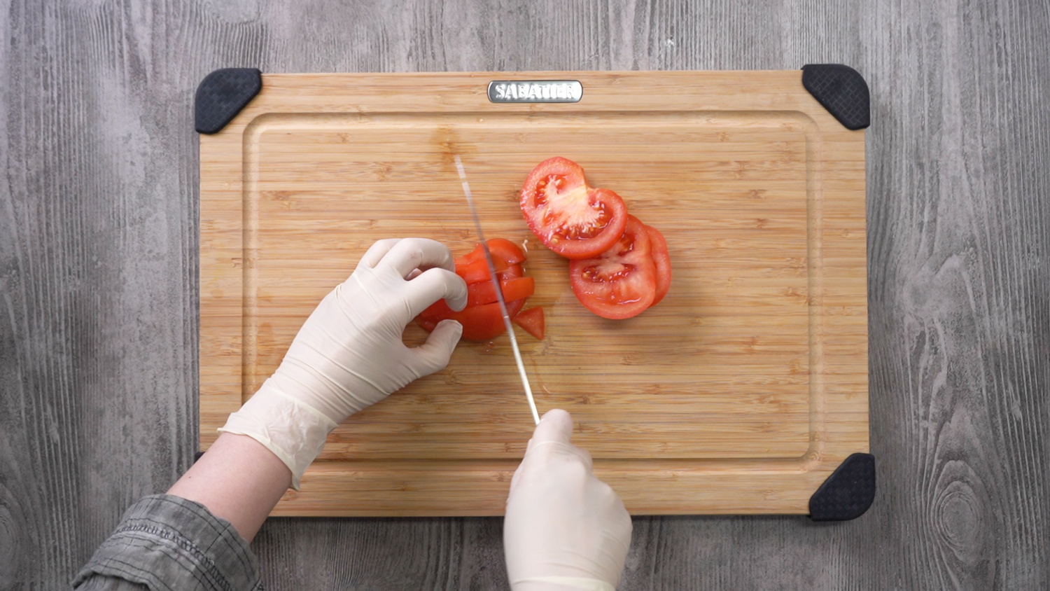 토마토와 양파는 깍뚝 썰기로 썰어주세요.