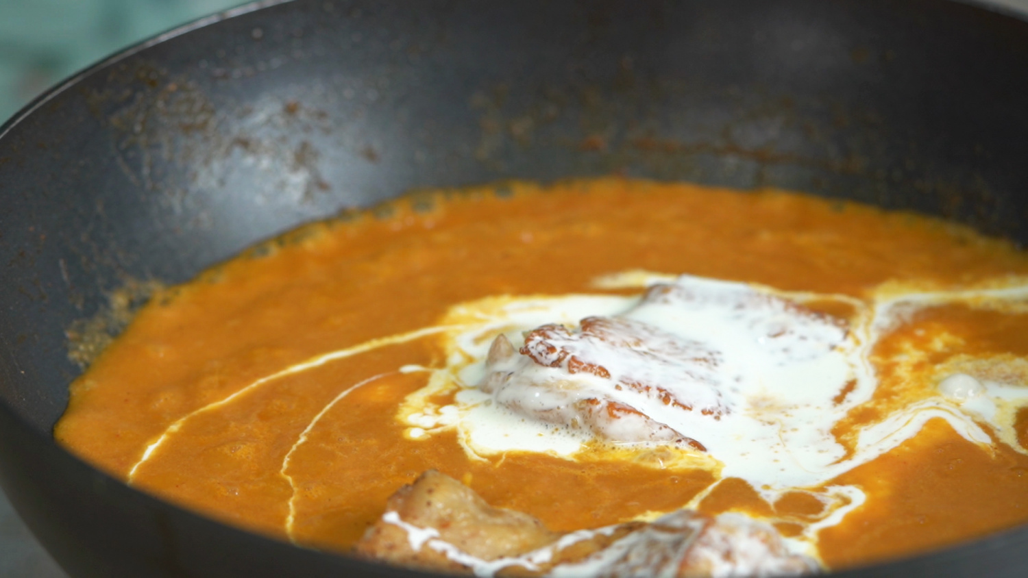 구운 닭고기와 생크림을 넣고 조금 더 끓여주면 완성~