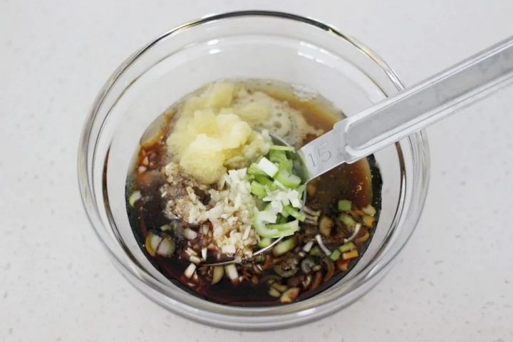 양념재료들을 골고루 섞어 양념장을 만들어주세요.