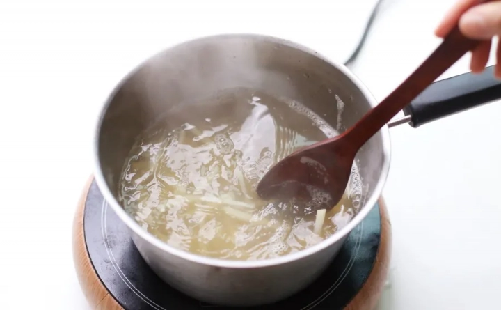 멸치육수 1L를 붓고 감자를 넣어 끓여주세요.