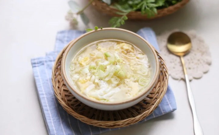 [재료]: 계란 2개, 감자 1개, 대파 1/3대, 멸치육수