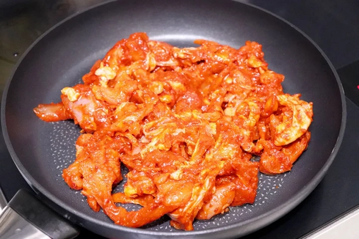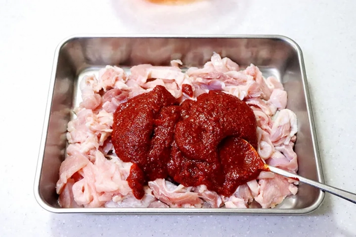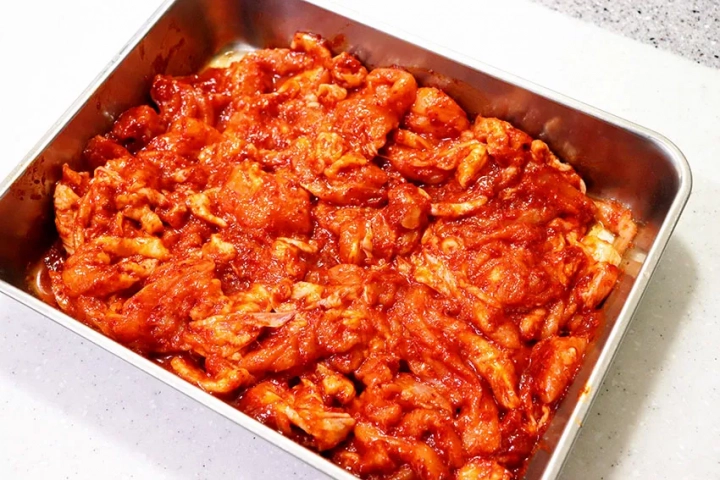 닭고기에 만들어둔 양념을 모두 넣고 골고루 버무려주세요.