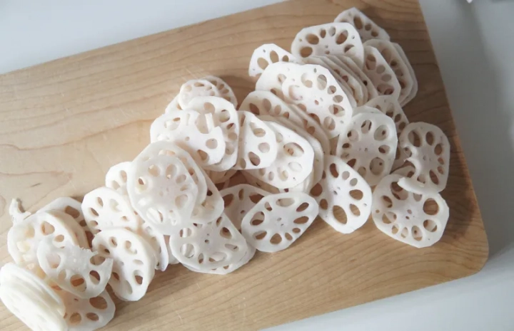 껍질을 제거한 연근은 최대한 얇게 썰어주세요.