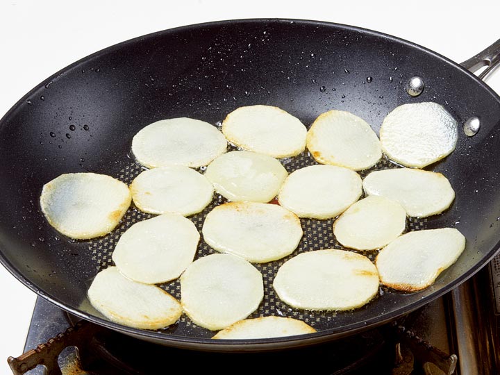 팬에 식용유 2큰술 두른 뒤 감자를 올려주고