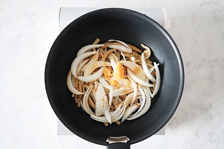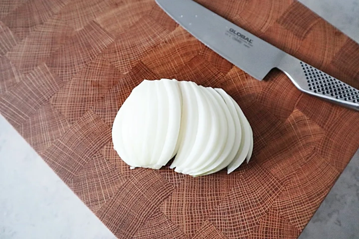 양파는 적당한 굵기로 일정하게 채를 썰어주세요.