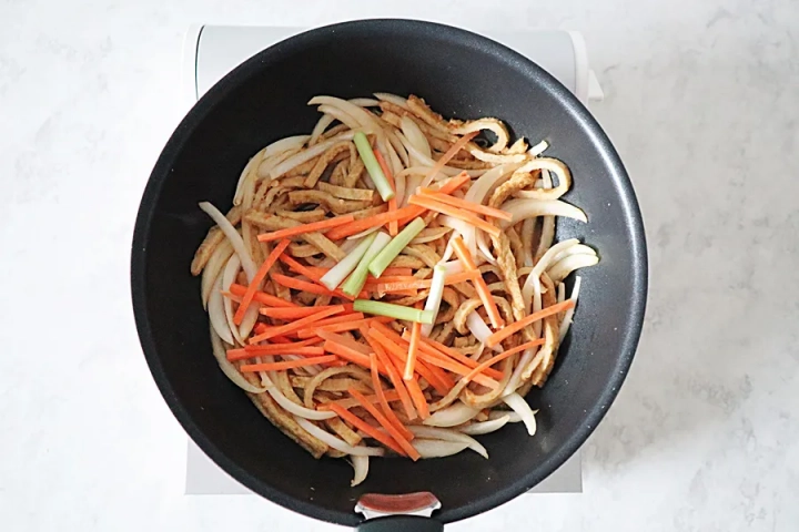 양파가 투명해지면 당근과 파 흰부분을 넣고