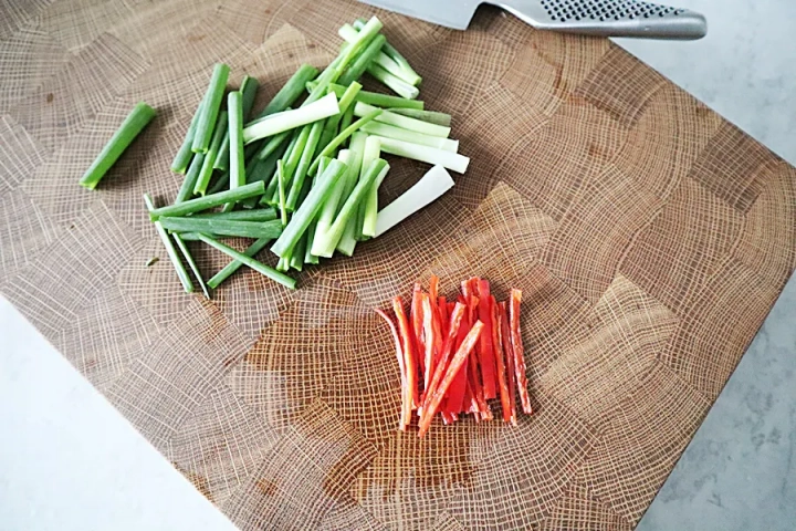 쪽파도 적당한 길이로 채를 썰어주세요.