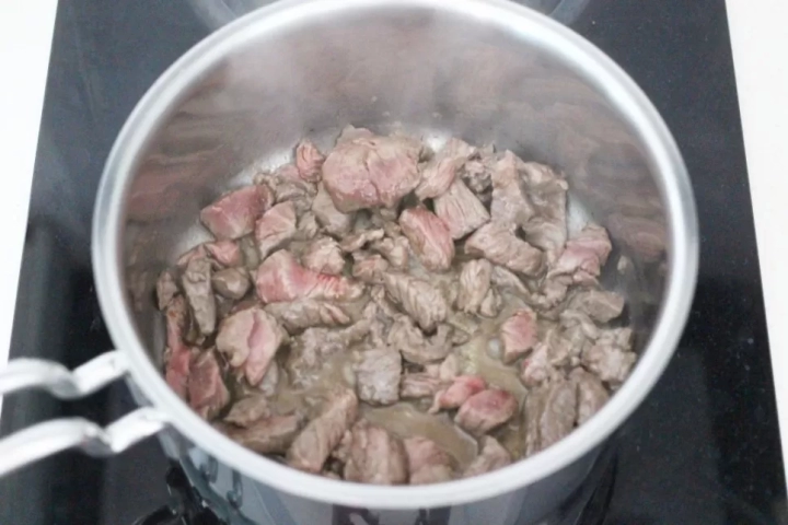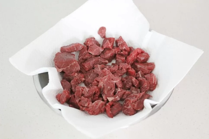 고기는 핏기를 제거하고 한입 크기로 썰어주세요.