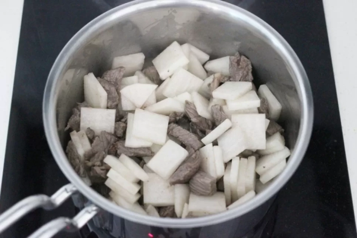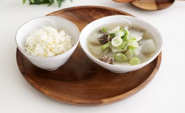 [재료]: 무 450g, 소고기양지 250g, 대파 1대