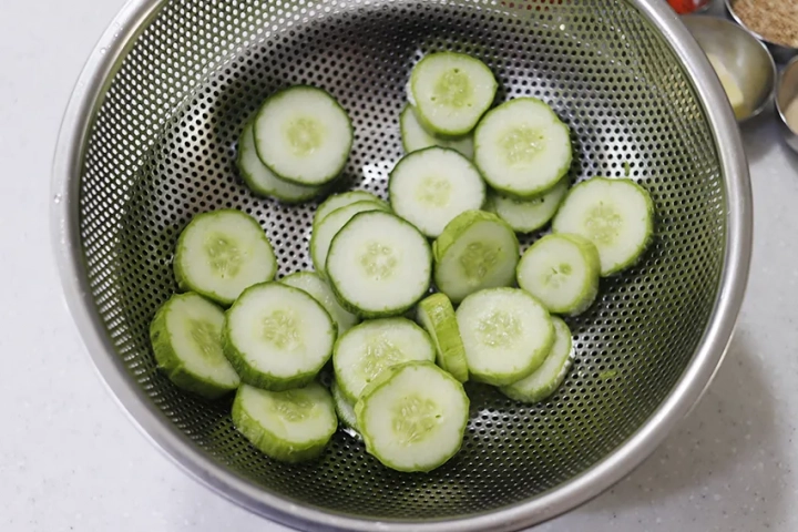 깨끗하게 씻은 오이는 적당한 두께로 썰고