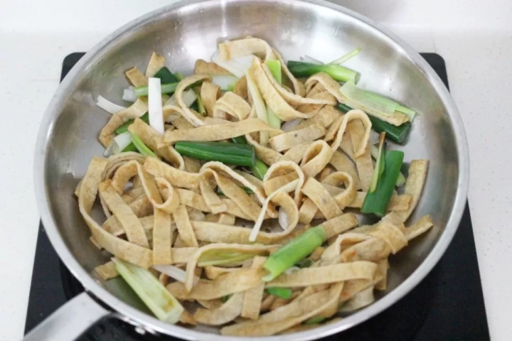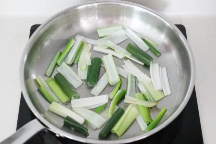 달군 팬에 기름을 둘러주고 대파를 볶아주세요.