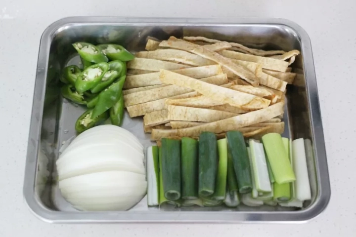 양파는 채를 썰고 고추는 송송 썰어주세요.