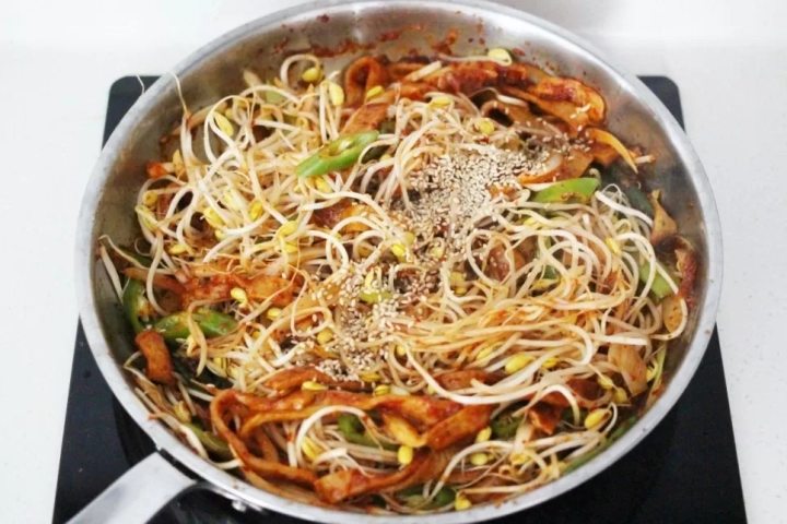 콩나물을 넣어 휘리릭 빠르게 볶아주고