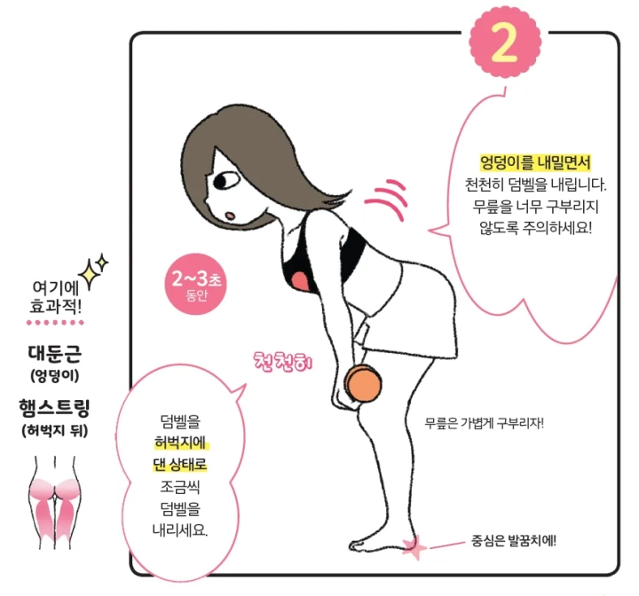 * 쭉벋은 다리와 애플힙으로 뒤태 자신감, 루마니안 데드리프트 (10회 * 2세트)