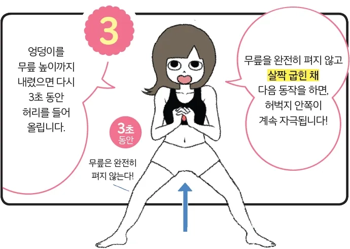 * 와이드 스쿼트의 효과를 2배 올려주는, 크로스 레그 어덕션 (좌우 20회 * 3세트)