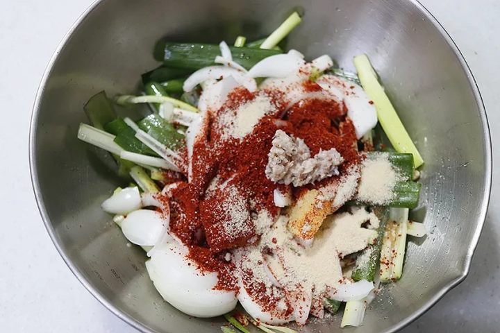 멸치액젓 대신 까나리액젓 사용하셔도 돼요.