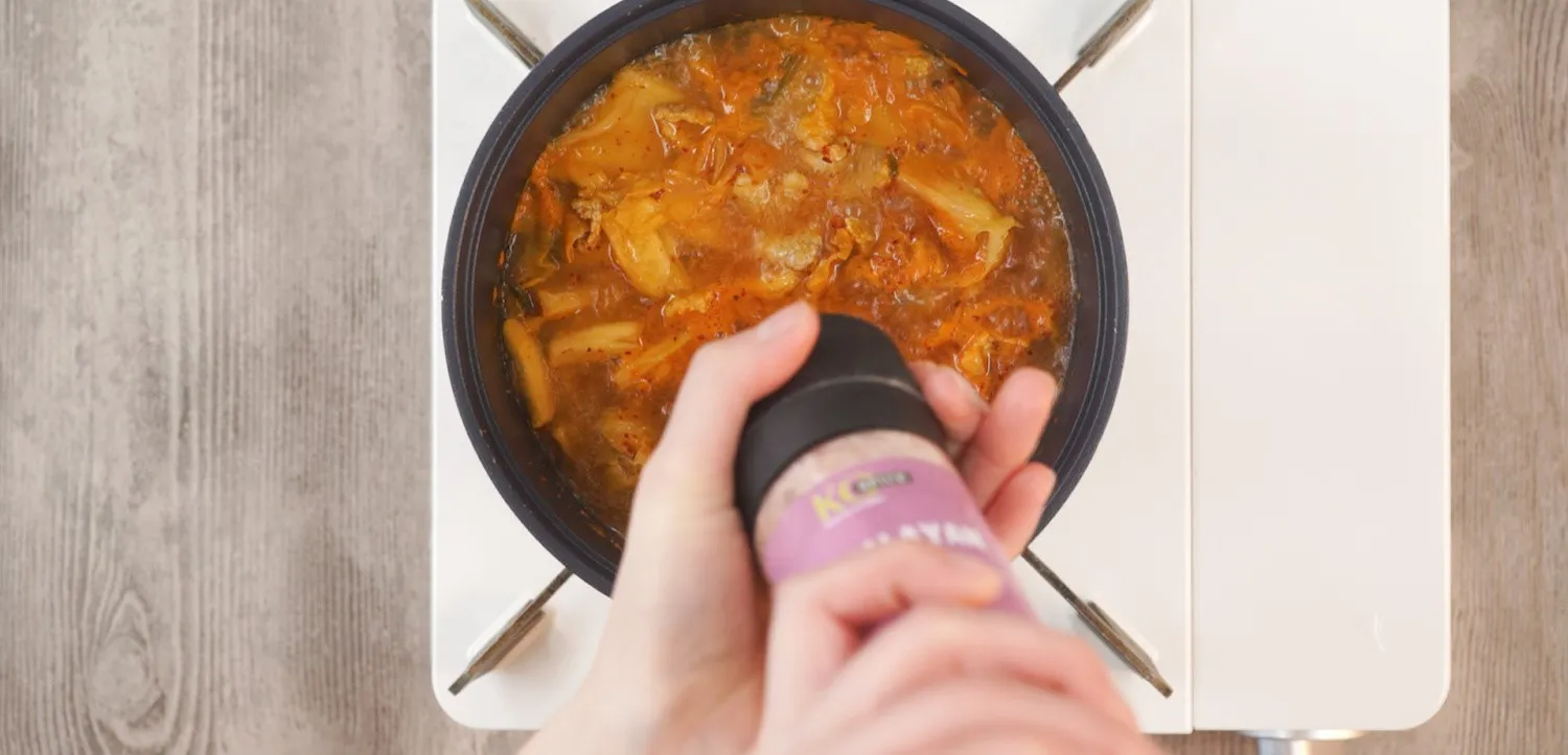 [재료]: 밥 1.5공기, 김치 1종이컵, 멸치다시백 1개,