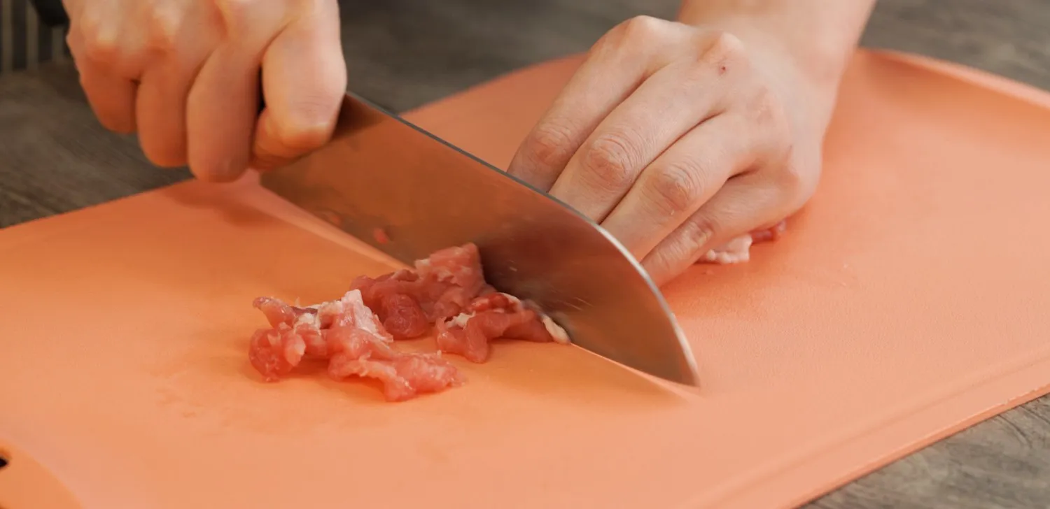 ​돼지고기는 핏물을 제거하고 한 입 크기로 썰어주세요.
