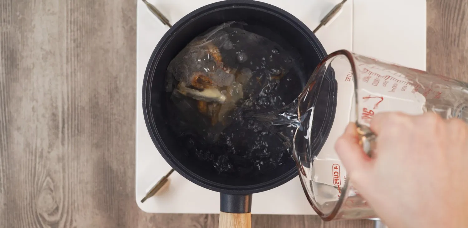 냄비에 멸치다시백과 물을 4종이컵을 넣어